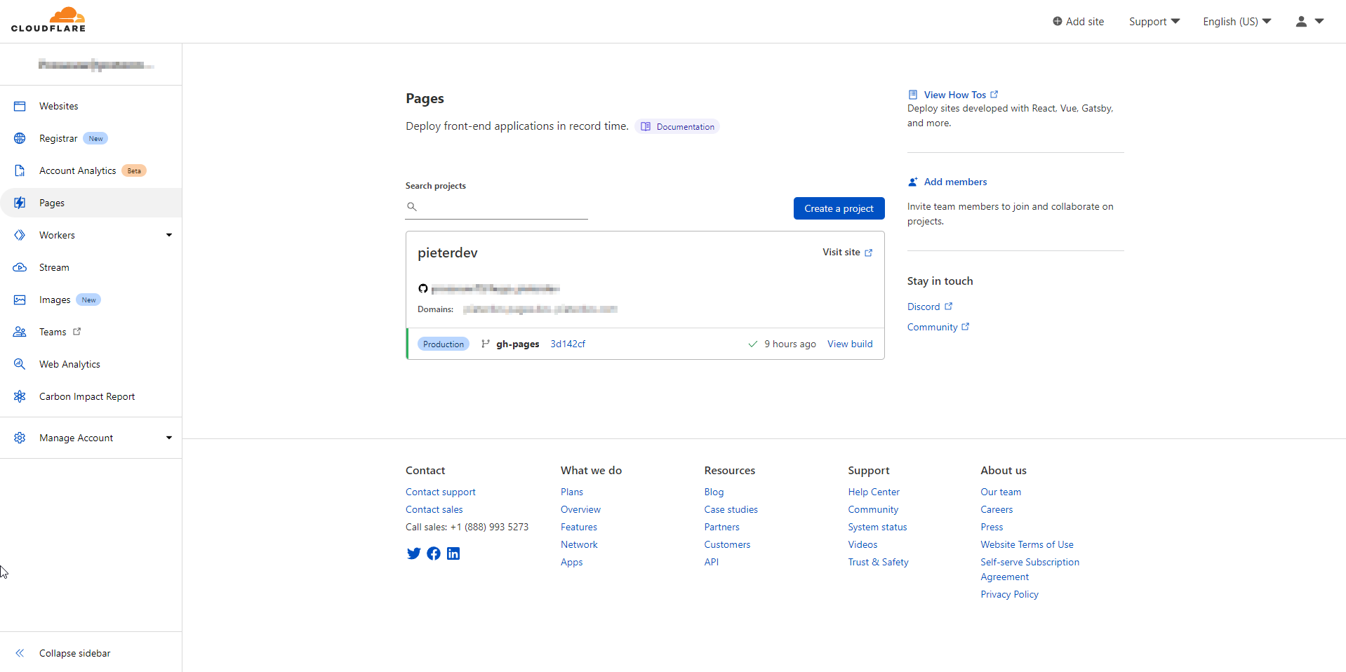 Now that updates to the website get built automatically, I’d like the web host to deploy any changes automatically as well. My static web host of choice is Cloudflare Pages. Simply create an account and navigate to pages: